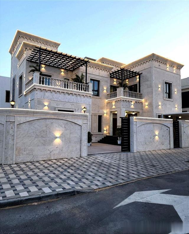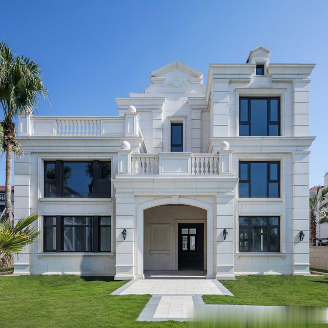 别墅的外立面通常采用天然的石材进行装饰,如大理石、花岗岩等。